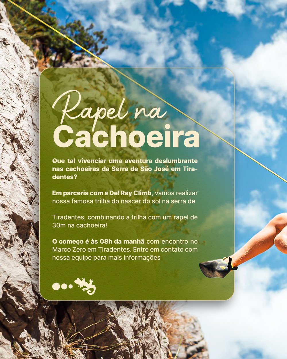 Venha viver esse nascer do sol inesquecível e sentir a adrenalina de se superar no rapel! 🌅💦